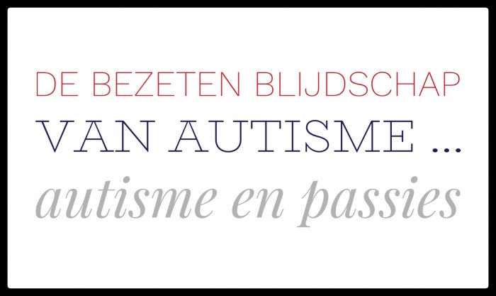 Om de een of andere reden wordt het enthousiasme van mensen met autisme voor hun passies volgens haar jammer genoeg steeds de kop ingedrukt, of vormt het een aanleiding van pesten of bemoeizucht. Terwijl het plezier dat ermee gepaard gaat net een rijke bron van energie is. Mogelijks is het zelfs besmettelijk voor mensen zonder autisme die met hetzelfde bezig zijn.