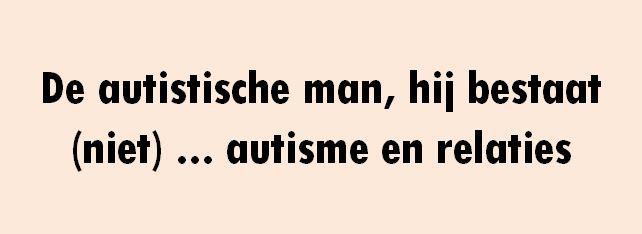 Zowel de autistische als de gewone man zijn dus eigenlijk de vreemde man uit de klassieke song van de Vlaamse zangeres Ann Christy. Niet voor niets is ‘dag vreemde man’ ook de titel van een intussen klassiek geworden boek van journaliste Veerle Beel (De Standaard) rond partnerrelaties van mensen met en zonder autisme. En het moet gezegd: op sociale media en binnen praatgroepen lijken veel mannen met autisme aan dat toch wel stereotype beeld te beantwoorden.