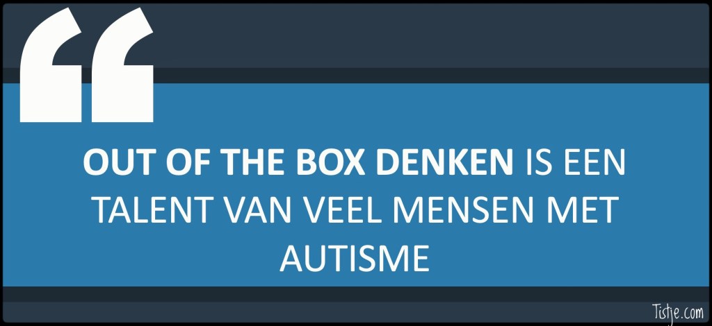 Ik lees de stelling trouwens als een marketingkreet voor de lobby voor autisten op de arbeidsmarkt; talent tot ‘out of the box’ denken is net zo’n loze sollicitatiebrief-frase als het talent tot ‘teamplayer’, ‘flexibel’, ‘gedreven’, ‘passie’ en zo nog wat bs-bingo eigenschappen.