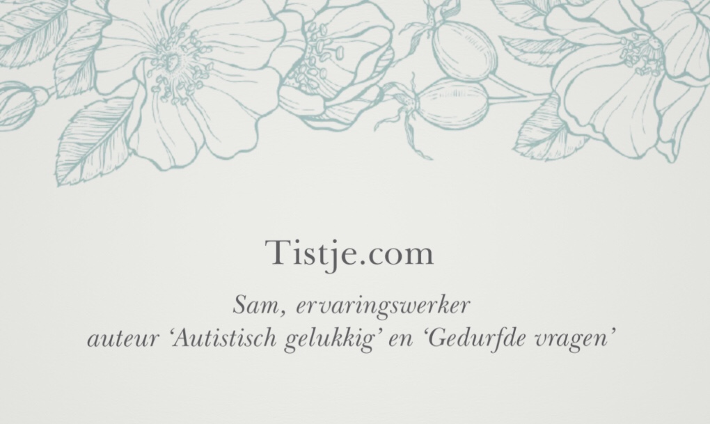 Ik zou verder nog dit vermelden : ‘Momenteel werk ik freelance en vrijwillig als ervaringswerker autisme en handicap en ik streef ernaar om mezelf voortdurend te ontwikkelen in mijn specialisatie. Een unieke ervaring in mijn leven was toen ik twee weken met een groep mensen met verstandelijke en andere beperkingen op reis ging naar de Yorkshire Dales.’