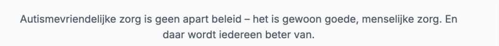 Zie autisme niet als een stoornis die in de weg zit, maar als een andere manier van zijn die om een andere benadering vraagt. Autismevriendelijke zorg is geen apart beleid – het is gewoon goede, menselijke zorg. En daar wordt iedereen beter van. Het begint met een gesprek. Het begint met begrip.