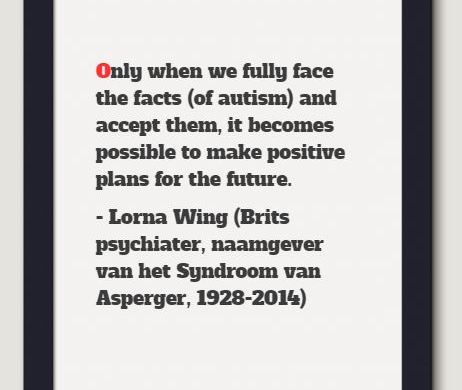 Citaat van Lorna Wing gebruikt in een voordracht van Peter Vermeulen (Autisme Centraal) in het kader van een realistische visie op mogelijkheden en beperkingen van mensen met autisme.