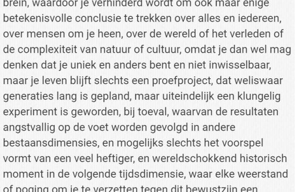 Er is om te beginnen goed nieuws. Als u dit leest, is de kans groot dat u (nog) niet dement of dood bent. Fantastisch. Anderzijds … echt levend kunnen we u toch ook niet noemen. U zit of hangt of ligt achter de computer, boven uw iPad, boven uw smartphone en leest een blog. Op dit uur. ‘Terwijl er nog zoveel lieve dingen zijn’, om Toon Hermans te citeren. Teveel bezig met hetzelfde? U hebt vast wel al eens ‘Get a life’, ‘zet een stapje in de wereld’, of ‘doe… Read more Ervaring →