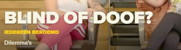 Onlangs zag ik opnieuw een stukje in de rubriek ‘dilemma’s in het leven’ uit het VRT-programma ‘Iedereen Beroemd’ waarin een aantal duo’s zich boog over een of ander dilemma. Deze week kwam de keuze tussen doof en blind aan bod. In Onlangs gebeurde dat met een rubriek uit het VRT-programma ‘Iedereen Beroemd’ waarin een aantal duo’s zich boog over een of ander dilemma. In deze blog probeer ik daar op te antwoorden, vanuit eigen ervaringen met het dilemma.