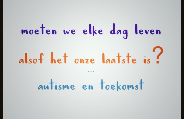 Elke twaalfde van de maand probeer ik iets te schrijven rond de Grote Vragen (zie bv Canvas en de BBC). Deze keer stel ik me de vraag of we elke dag moeten leven alsof het onze laatste is. De ondertitel is autisme en toekomst.