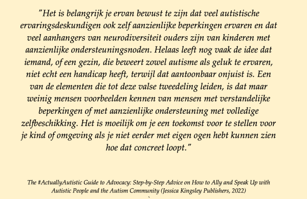 Fragment uit The #ActuallyAutistic Guide to Advocacy over bepaalde misverstanden die leven rond autistische ervaringsdeskundigen en gezinnen in verband met handicap, beperkingen, geluk en zelfbeschikking