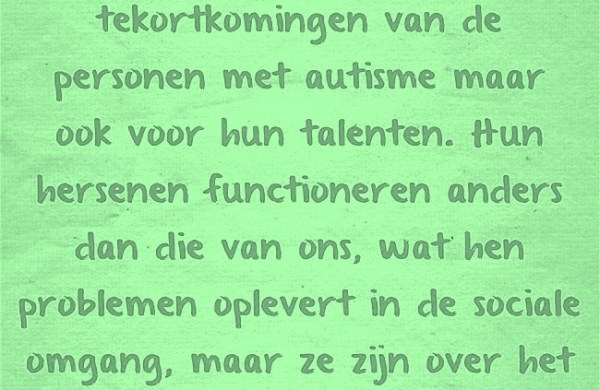 Een autismespectrumstoornis verdwijnt niet door therapie. Maar hoe jonger de begeleiding van de kinderen begint, des te groter de kans dat hun taal zich goed ontwikkelt en dat ze later zelfstandig zijn. (…) We weten niet of de hulp die gezinnen krijgen wel goed is. De methoden waarmee de centra werken verschillen nogal. Wie zich op welke methode baseert, en of die wel rekening houdt met wetenschappelijke inzichten, controleert niemand. Het is een jungle waar iemand de ouders doorheen zou moeten gidsen. (…) Niemand heeft een overzicht van welke hulp… Read more ‘Kinderen met autisme blijven in de kou staan’ →