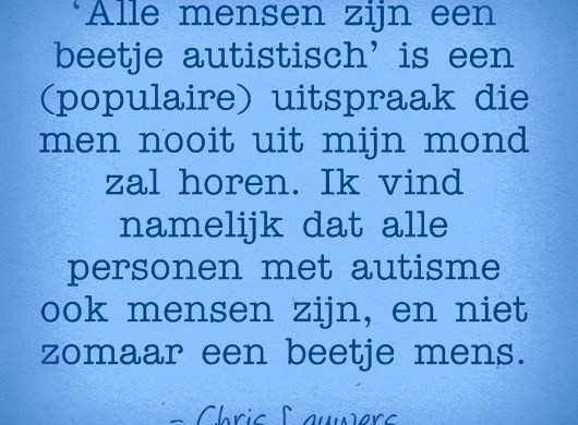 Citaat van schrijfster/moeder/ervaringsdeskundige Chris Lauwers over mensen met autisme die ook mensen zijn en niet zomaar een beetje mens