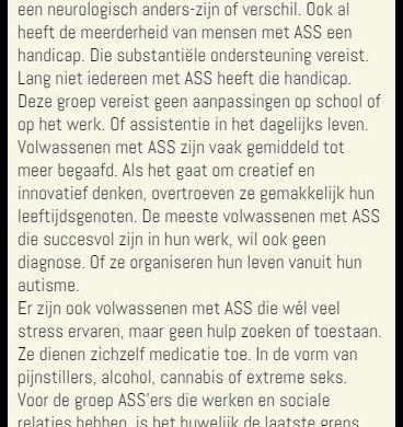 Het belang van een sociale kring voor een man/vrouw die in een partner/liefdesrelatie samen leeft of woont met iemand met autisme kan niet onderschat worden. Lezeres Isabelle van Wymeersch geeft haar diverse ervaring met (mensen met) autisme weer in een genuanceerde bijdrage in het verhaal over omgaan met een partner met autisme.