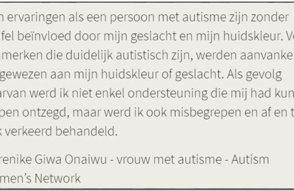 Citaat uit het artikel “Gender stereotypes have made us horrible at recognizing autism in women and girls” van 12 oktober 2016 (geciteerd door de uitgever Jessica Kingsley Publishers en oorspronkelijk verschenen op QZ.com).